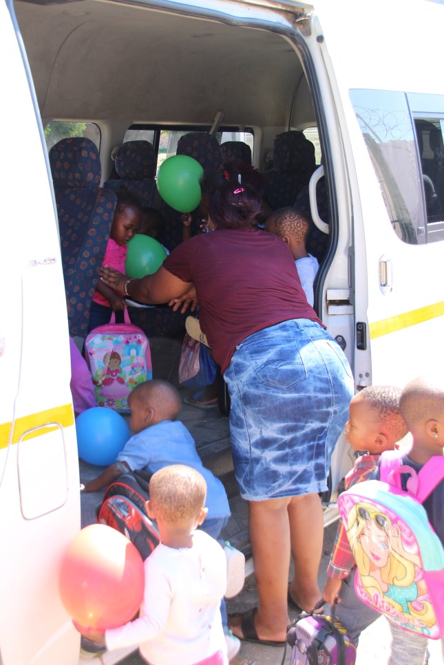 Wanneer we er toekomen is het net middag dutje. De meesten liggen zalig te slapen. Mijn ballonnen zijn een grote hit in de kleinste kleuterklas. Is net makkelijk foto’s maken met zo’n enthousiaste kinderen, en een aantal ambetante fotografen van de groep. We krijgen verder een hele rondleiding door de verschillende klassen. Wanneer we klaar zijn, is ook net tijd om de eerste lading naar huis te brengen. Het zijn de kids van de eerste kleuterklas. Allemaal trots met hun balloon onder de arm. Ze worden in een klein minibusje gezet. Het is een beetje ‘ hoeveel kids kunnen er in een minibus?’ Zo zouden ze hier nooit mogen rondrijden. 🙈🤔