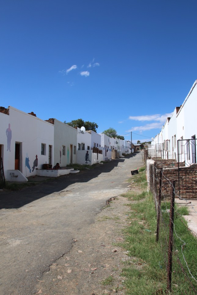 Vervolgens lopen we verder door de township richting het ziekenhuis. Het is een ‘luxe’ township als je dat zo mag noemen. Ze hebben hier allemaal al stenen huisjes. Heb al townships gezien waar het golf platen huisjes zijn. Overal komen de kids en mensen wel aangelopen en gaan vrijwillig op de foto. Tegen dat we aan het ziekenhuis zijn, is dit dicht. Vraag me af wat je moet doen zls je na de openingsuren ziek wordt, maar dan moet je blijkbaar de 100 bellen om je te komen halen. Het is alweer bijzonder warm en heb toch maar een beperkte water hoeveelheid mee. Onze laatste stop is een huisje waar een mevrouwtje verder uitleg geeft. Ik kan niet navertellen waarover het ging, want heb de hele tijd met een aantal kids bezig geweest. Heel onnozel gekomen. Ik ben in het deurgat blijven zitten en dan komen de kinderen snel. Beetje mee onnozel gedaan en al snel zaten ze allemaal op mijn schoot. Ik kan niet meer vooruit of achteruit. Heel leuk, dit is afrika. Laat me hier maar een paar uur zitten. Helaas is onze tijd op en moeten we gaan.