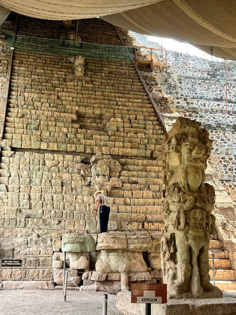 4 van de tempels kunnen nog wel beklommen worden. In tegenstelling tot 20 jaar geleden zijn er nu wel trappen gebouwd langs de zijkant, zodat het beklimmen iets makkelijker wordt. Sommigen blijven wel een uitdaging voor de mensen met hoogtevrees 😅 Maar eens boven is het zicht ongelooflijk mooi. Je kijkt uit over de boomtoppen. En sommige tempels komen ook ver boven de boomtoppen. De hoogste tempel die we beklimmen is 72 meter. Behoorlijk indrukwekkend om daar boven te staan. Slechts 15% van deze tempel is zichtbaar. De andere 85% zit nog bedolven over de aarde en bomen. Er kan enkel maar gerestaureerd en gegraven worden als er geld uit het buitenland komt. Want het land zelf steekt geen geld in de restauratie van de site.