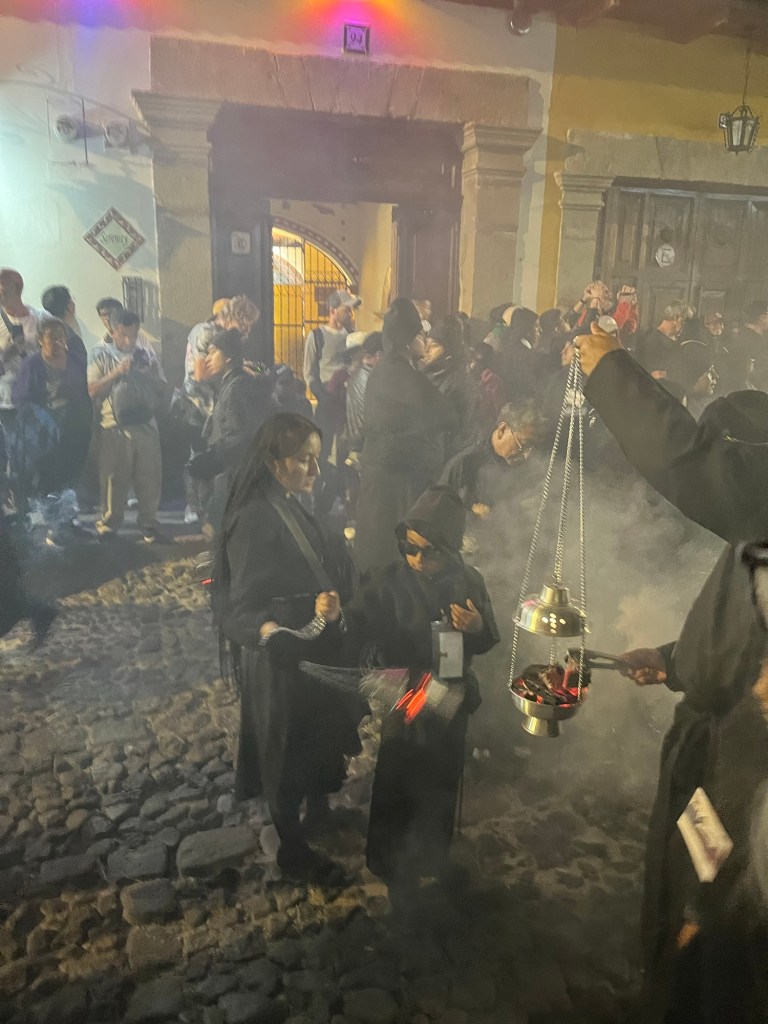Enige nadeel is dat we nooit weten waar en hoe laat de processies komen. Dus er is veel wachten bij, vroeg opstaan, rond lopen en nu en dan al eens uitgerookt worden. Vermits de processie stilstaat en er dan net iemand met wierook voor je moet wachten 🙂