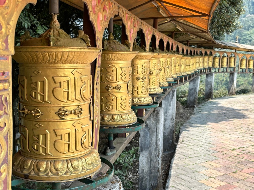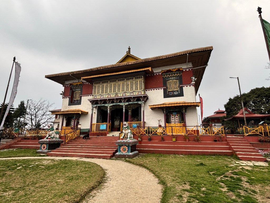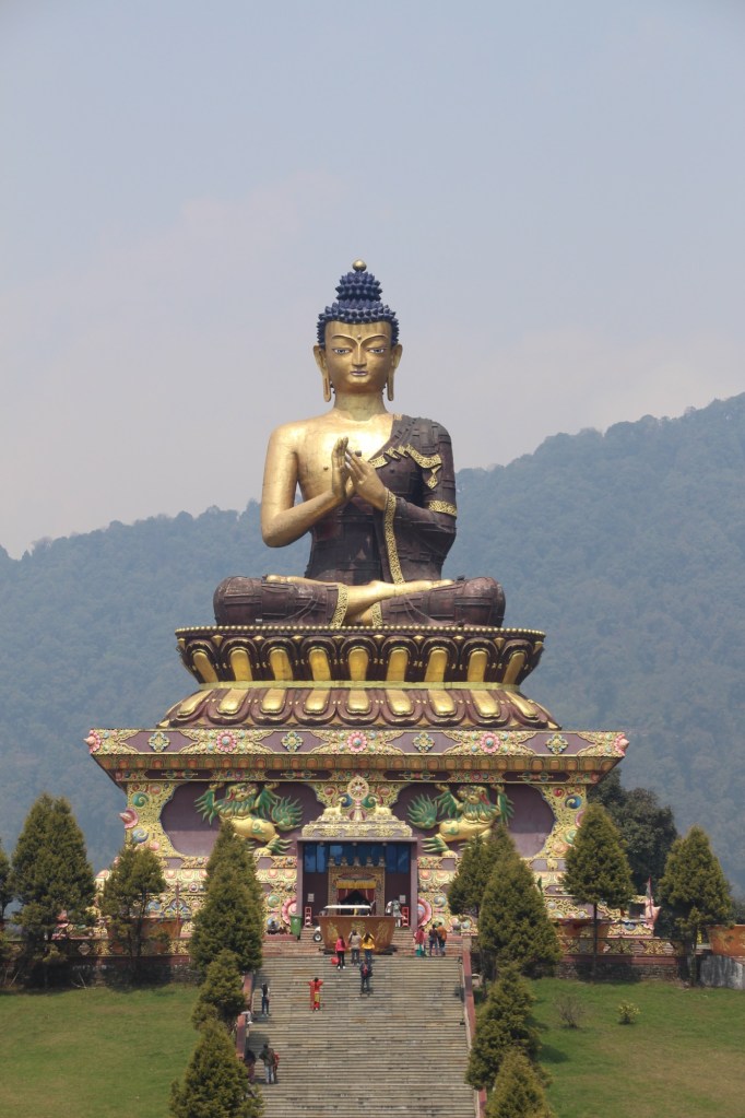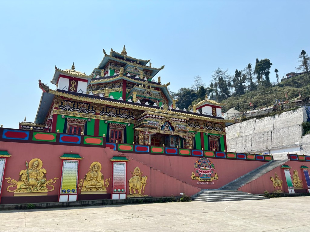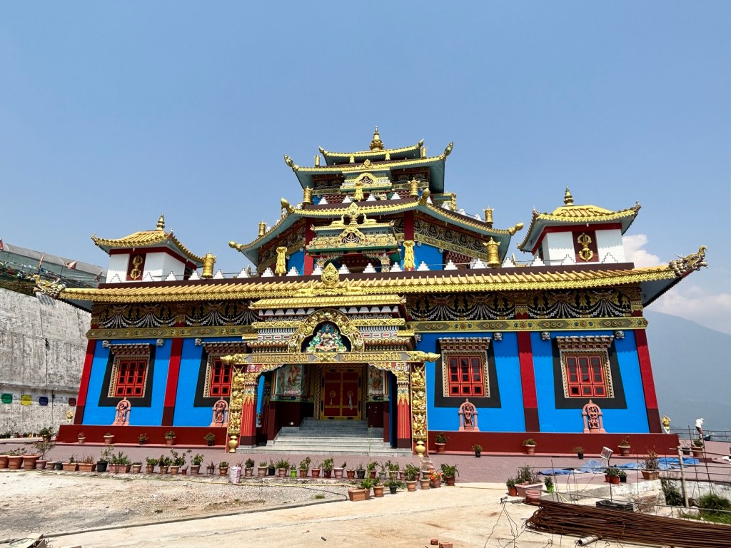Op de middag bezoeken we eerst het Revangla Boeddha Park. Hier staat een 40m hoog Boeddha beeld. Van ver is het al indrukwekkend, maar hoe dichterbij je komt, hoe grootser het wordt. 😍 We eten ook op de site. Je hebt keuze tussen noodles of soep. Geef me dan maar noodles 🤩 Helaas heb ik na 3 happen al genoeg van. Het smaakt me niet. Dan kunnen we weer de baan op. We halen ons target point ruim op tijd en rijden door richting Pelling. Hier zijn we net op tijd voor een bezoek aan het Pemayangtse klooster. Helaas geen foto’s binnen…
