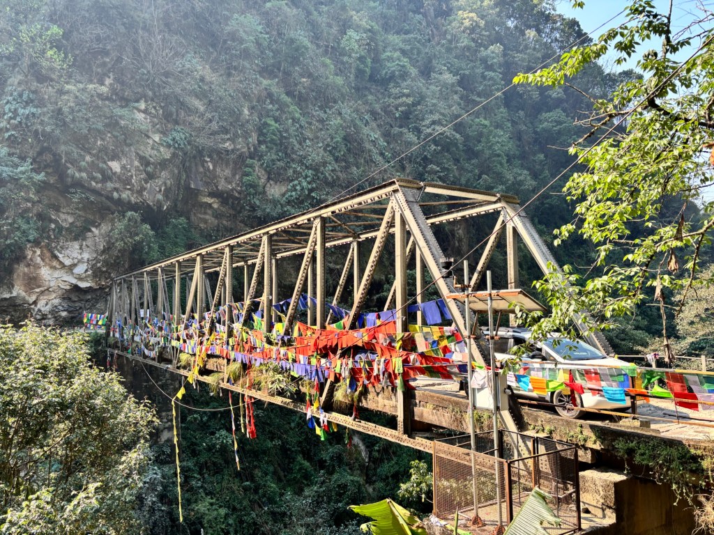Vandaag rijden we naar Yuksom. Op zich niet zo ver, maar door de slechte en smalle wegen doen we er toch wel een tijdje over 😅 is soms echt millimeterwerk 🤣 Denk dat je hier een serieuze cursus leren rijden moet volgen en meetkunde moet kennen om de juiste hoeken te kunnen maken.